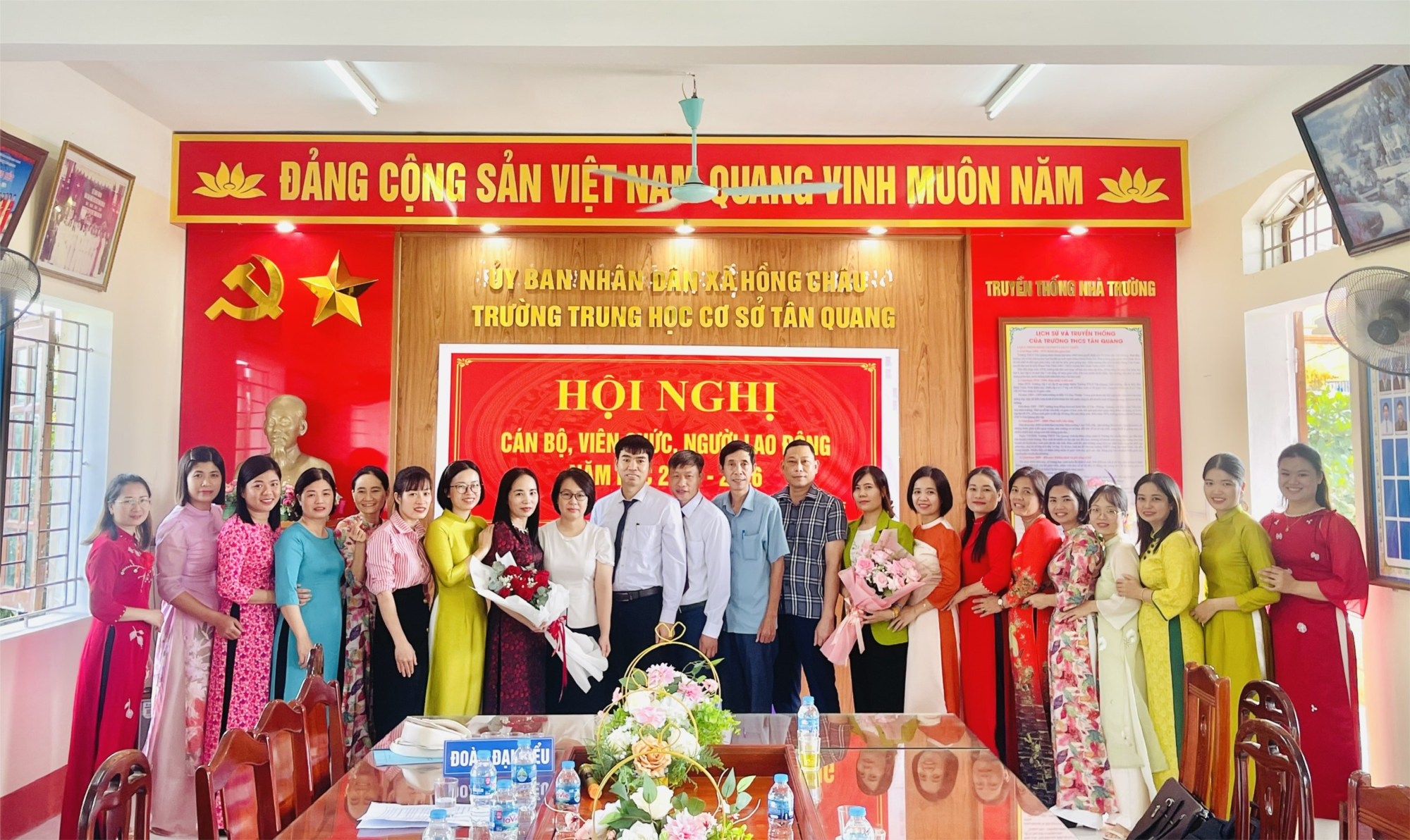 Hội nghị viên chức Trường THCS Tân Quang năm học 2025-2026 đã diễn ra trong không khí dân chủ, đoàn kết và trách nhiệm. Với tinh thần thống nhất cao, toàn thể cán bộ, giáo viên, nhân viên nhà trường quyết tâm tiếp tục phát huy những thành tích đã đạt được, khắc phục khó khăn, đổi mới sáng tạo trong dạy học và công tác. Tin tưởng rằng, dưới sự lãnh đạo của Ban Giám hiệu cùng sự đồng lòng của tập thể sư phạm, Trường THCS Tân Quang sẽ hoàn thành xuất sắc nhiệm vụ năm học 2025-2026, góp phần nâng cao chất lượng giáo dục của địa phương.